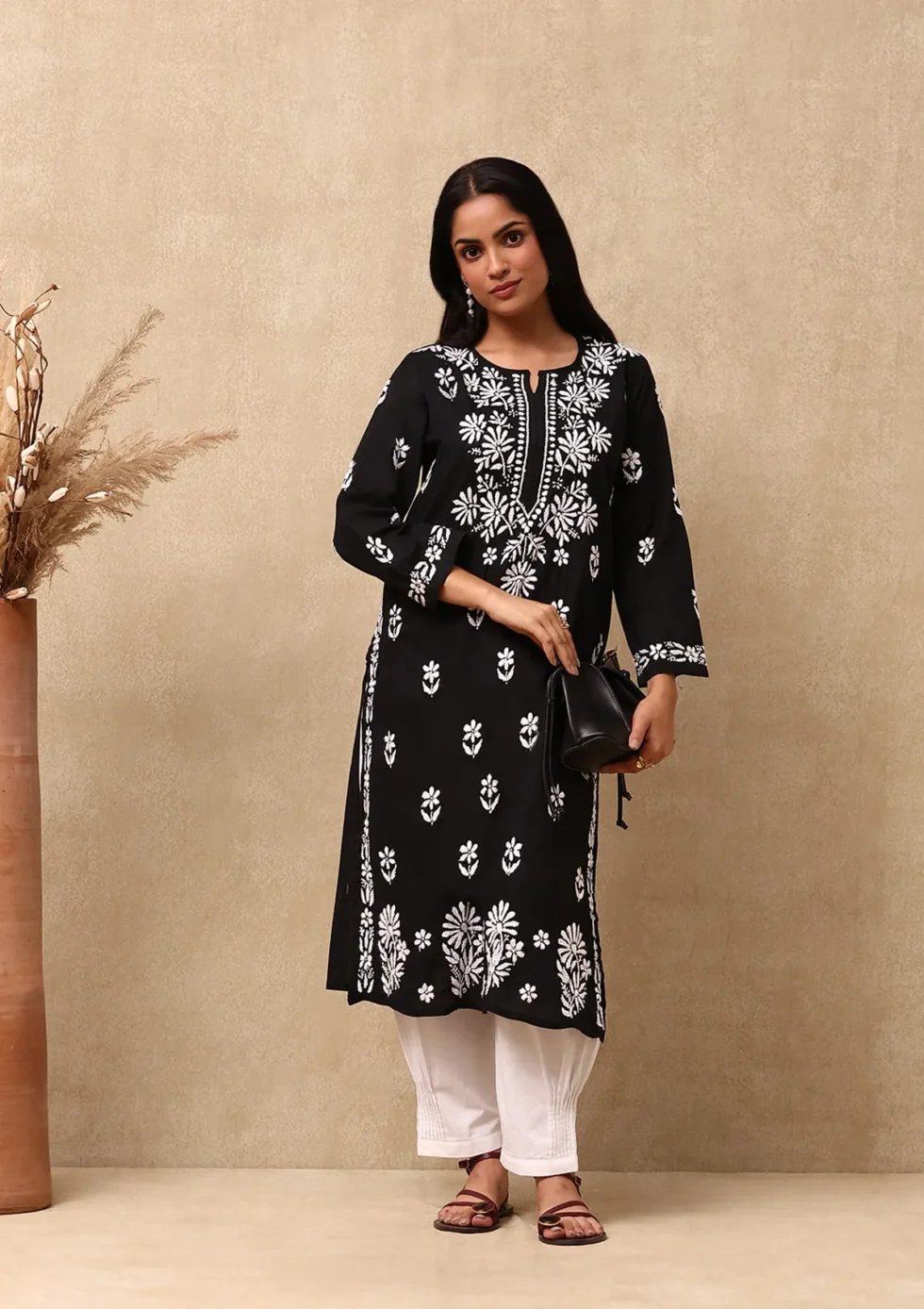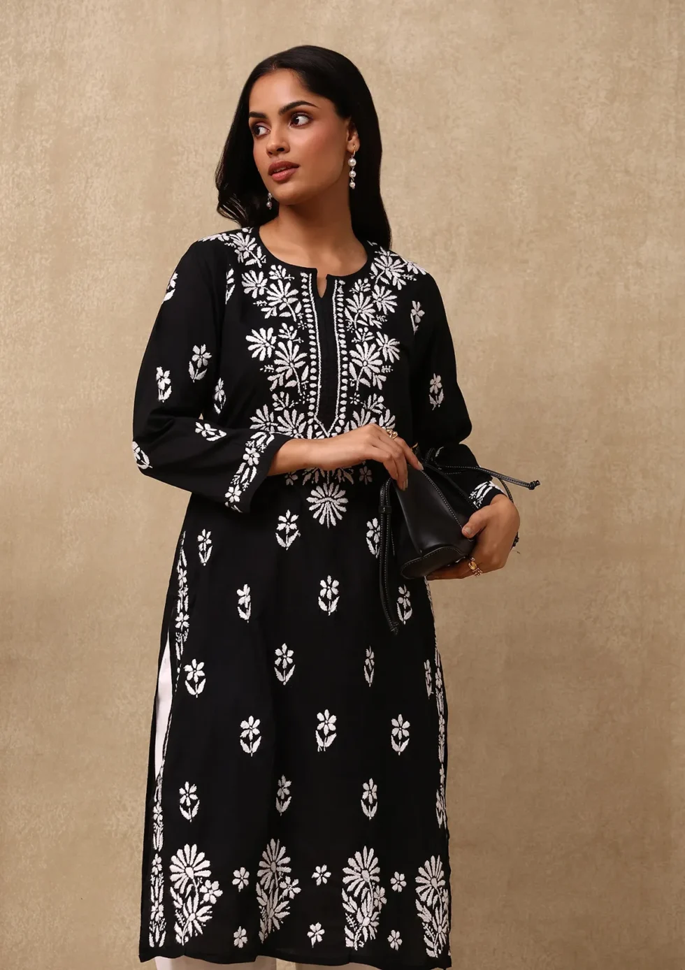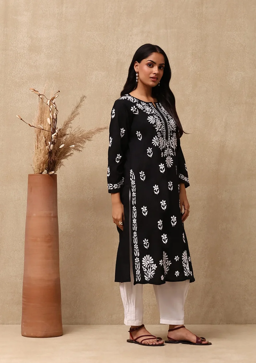 Be the first to review “Nida Chikankari Cotton Black Straight Kurta”